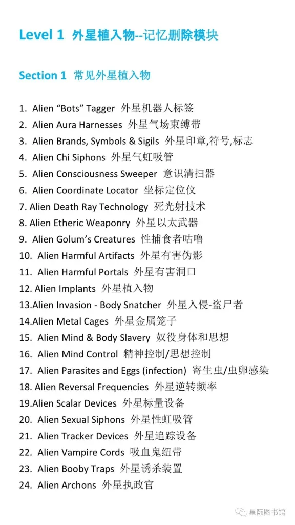 这种方法也适用于帮别人远程检测,但是远程探测的第一原则是:遵循意愿法则和同意法则,事先征求对方的同意,不要随意探测别人的能量场。我更建议运用HSP和肌肉测试法,有些植入物看名称就知道自己有没有,但更多植入物深藏在我们的潜意识里。当你的意识觉知到植入物的存在,它们在潜意识层面操控你的效应就会大幅减弱,剩下的工作就是清理和修复。植入物手册罗列了260种植入物,有些植入物的概念费解难懂,这篇文章对此作详细的解读,看看负面ET在帷幕后暗箱操作的手段和方式。